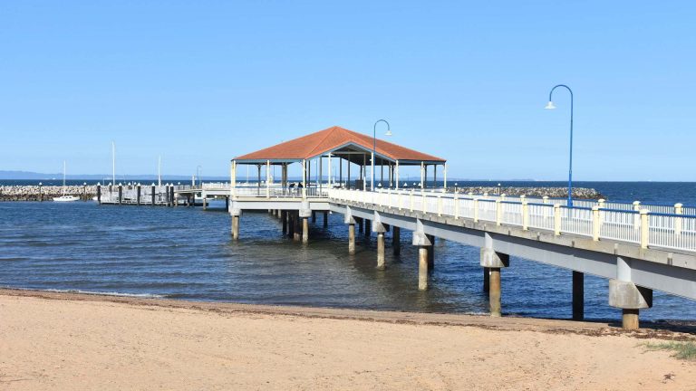 The Woody Point Jetty is a popular destination, boasting sweeping views of Moreton Bay and the perfect spot to catch the sunrise.